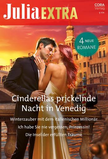 CINDERELLAS PRICKELNDE NACHT IN VENEDIG von SHARON KENDRICK In einem geliehenen Kleid schleicht sich Grace wagemutig auf den Maskenball in Venedig. Mit sinnlichen Folgen! Denn um Mitternacht küsst sie der umwerfend attraktive Milliardär Odysseus Diamides heiß – der nie erfahren darf, dass sie nur ein armes Hausmädchen ist … WINTERZAUBER MIT DEM ITALIENISCHEN MILLIONÄR von LORRAINE HALL „Ein Wagen wird Sie abholen.“ Ungläubig liest Diego Folliero die E-Mail. Seit einem Schicksalsschlag meidet der Millionär jede Gesellschaft! Aber seine Assistentin Amelia lockt ihn in ein verschneites Alpenchalet. Wo er ihr in einer sternenhellen Winternacht sein Herz öffnet … ICH HABE SIE NIE VERGESSEN, PRINZESSIN! von JUSTINE LEWIS Damals hat Hightech-Unternehmer Rowan James die Prinzessin seines Herzens verlassen: Der öffentliche Druck war zu groß. Als er Isabella von Monterossa jetzt in einem Londoner Club wiedersieht, flammt die Liebe zwischen ihnen erneut auf – diesmal mit einem Happy End? DIE INSEL DER ERFÜLLTEN TRÄUME von KARIN BAINE Es könnte ein toller Job sein: Auf einer paradiesischen Südseeinsel betreut Jo die Matriarchin der reichen Familie Stroud. Doch deren gut aussehender Enkel Taylor behandelt sie unerträglich arrogant – bis sie gemeinsam einen Tropensturm überstehen müssen …