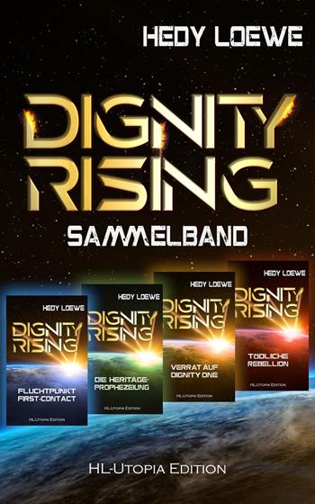 **Von Rebellen und grausamen Herrschern, neuen Welten, ungewöhnlichen Freundschaften und einer Liebe, die alles überwindet** »Wer Panem mag, wird Dignity Rising lieben.« (Leserstimme) Auf der Raumstation First-Contact-3 führt Commander Jon Matthews ein zurückgezogenes Leben. Bis seine Frau Shay schwer krank auftaucht. Sie wurde ihm vor Jahren entrissen und kann sich nicht an ihn erinnern. Jon bäumt sich gegen das ihm zugedachte Schicksal auf und beginnt, um Shay und sein verlorenes Leben zu kämpfen. Er ahnt nicht, dass er damit endlich die große Rebellion gegen die menschenverachtende Telepathenherrschaft und ihrer grausamen Botenkrieger auslöst, auf die viele so lange gewartet haben. Und plötzlich stehen auch noch die Leben seines kleinen Sohns und seiner Freunde auf dem Spiel und die Übermacht der Herrschenden scheint unüberwindbar … //Dieser Jubiläums-Sammelband enthält alle Bände der actionreichen, bittersüßen Scifi-Fantasy: -- Dignity Rising 1: Fluchtpunkt First-Contact -- Dignity Rising 2: Die Heritage-Prophezeiung -- Dignity Rising 3: Verrat auf Dignity One -- Dignity Rising 4: Tödliche Rebellion// Diese Reihe ist abgeschlossen. In den letzten 10 Jahren ihres Autorendaseins sind außer der vierbändigen Dignity-Saga, eine zweite vierbändige SciFi-Fantasy-Serie (Planspiel Beta-Atlantis), ein Gedichtband und ein umfangreiches Sachbuch entstanden, außerdem wirkte Hedy Loewe in mehreren Antologien mit. Das nächste Projekt ist in Arbeit, und wieder geht Hedy Loewe neue Wege: Ein Roadtrip verschmilzt mit anspruchsvoller High-Fantasy ...