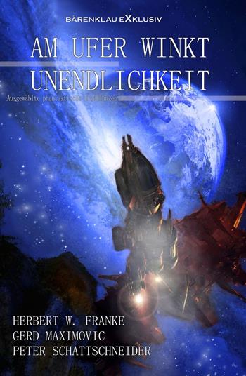 AM UFER WINKT UNENDLICHKEIT ist ein phantastischer Erzählband von den Autoren Herbert W. Franke, Gerd Maximovic und Peter Schattschneider, die hier mit einer kleinen Auswahl ihrer Prosatexte bedacht werden. Alle drei Autoren sind im deutschsprachigen Raum und darüber hinaus seit Jahrzehnten bestens bekannt. Sei es Peter Schattschneider, dessen Erzählungen genau wie die des geschätzten Kollegen Gerd Maximovic die Phantastische Bibliothek des Suhrkamp Verlages bereicherten, oder Herbert W. Franke, der viele Jahre die Science-Fiction & Fantasy-Reihen des Heyne Verlages als Herausgeber mitbetreute. Die hier vorgelegte kleine Auswahl kann natürlich nur dürftig das weite Feld phantastischer Erzählungen skizzieren und inhaltlich spannt sich der Bogen von der Science-Fiction bis zum Grenzbereich der Weird-Fiction. In diesem Band sind folgende phantastische Erzählungen enthalten: › Der dunkle Planet – von Herbert W. Franke; › Frankenstein und Co. – von Gerd Maximovic; › Der Traum des Philosophen – von Peter Schattschneider; › Warum schießt du nicht auf Peggy? – von Herbert W. Franke; › Das Ding, das vom Himmel fiel – von Gerd Maximovic; › Selbstgespräch mit Protoplasma – von Peter Schattschneider; › Sprung ins Nichts – von Herbert W. Franke; › Problemfall Großer Hundeplanet – von Gerd Maximovic; › Pflegeleicht! – von Peter Schattschneider; › Kursänderung – von Herbert W. Franke; › Expedition in die Vergangenheit – von Gerd Maximovic; › Scotty – von Peter Schattschneider;