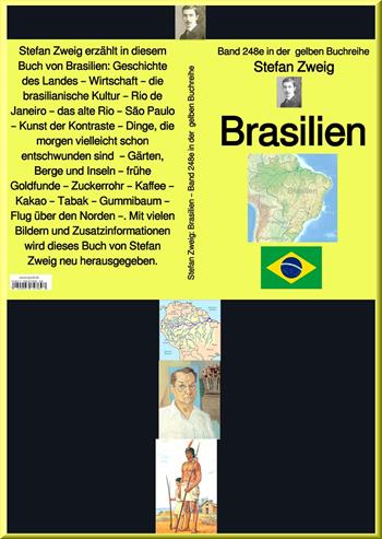 Stefan Zweig erzählt in diesem Buch von Brasilien: Geschichte des Landes – Wirtschaft – die brasilianische Kultur – Rio de Janeiro – das alte Rio – São Paulo – Kunst der Kontraste – Dinge, die morgen vielleicht schon entschwunden sind – Gärten, Berge und Inseln – frühe Goldfunde – Zuckerrohr – Kaffee – Kakao – Tabak – Gummibaum – Flug über den Norden –. Mit vielen Bildern und Zusatzinformationen wird dieses Buch von Stefan Zweig neu herausgegeben. – Rezession: Ich bin immer wieder begeistert von der "Gelben Buchreihe". Die Bände reißen einen einfach mit. Inzwischen habe ich ca. 20 Bände erworben und freue mich immer wieder, wenn ein neues Buch erscheint. oder: Sämtliche von Jürgen Ruszkowski aus Hamburg herausgegebene Bücher sind absolute Highlights. Dieser Band macht da keine Ausnahme. Sehr interessante und abwechslungsreiche Themen aus verschiedenen Zeit-Epochen, die mich von der ersten bis zur letzten Seite gefesselt haben! Man kann nur staunen, was der Mann in seinem Ruhestand schon veröffentlicht hat. Alle Achtung!