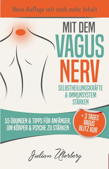 Ausgeglichen, stress- und schmerzfrei, vital und lebensfroh den Alltag gestalten! Das klingt weit weg? Die Lösung ist IN IHNEN selbst! Vagus Nerv Training hat bei vielen Menschen spürbar die Lebensqualität verbessert. Dies ist die erweiterte Neuauflage des Bestsellers "VAGUS NERV - Potential des Ruhenervs bei Stress, Depression & Schmerz" von Julian Überberg: Mehr Inhalt - mehr Auswahl: + *NEU* 15 neue Vagus-Übungen: jetzt über 55 Übungen und Tipps! + *NEU* einfacher Vagus-Selbsttest für zu Hause + *NEU* 3-Tage-Blitz Vagus Kur für schnelle Ergebnisse. Warum dieses Buch? Weil alles enthalten ist, damit Sie sofort loslegen & Resultate erzielen können - ohne extra etwas kaufen zu müssen: + Infoteil über den Vagus: Erfahren Sie, wie das Vagus-Training wirkt und seien Sie motivierter, regelmäßig zu üben. + Praxisteil mit Übungen: über 55 Methoden und Tipps für schnelle Fortschritte. + 3-Tage Vagus Blitz Kur: In 3 Tagen "wie neu". Machen Sie den Praxis-Test! + Vagus-Heim-Test: Testen Sie die Funktionsfähigkeit Ihres Vagus zu Hause! + Wissenschaftlich fundiert: mit Studien- und Quellenverzeichnis. + Bilder: Illustrationen und Bilder für besseres Verständnis des Vagus Nervs und der Übungen. Wann kann ein Vagus Training helfen? + Sie leiden an Schmerzen, Ängsten, Stress oder Depressionen? + Nach Anstrengung brauchen Sie lange, um wieder zu Kräften zu kommen? + Sie wollen Beschwerden mit weniger oder ohne Medikamente in den Griff bekommen? + Sie haben Symptome wie Kopfschmerzen, aber Ihr Arzt kann nichts finden? + Sie suchen Möglichkeiten sich zu stärken, ohne Nebenwirkungen? + Sie hatten schon mal einen Burn-Out? + Sie wollen Ihr Immunsystem stärken, um in jedem Alter fit zu sein? Wenn Sie eine dieser Fragen mit "ja" beantworten, sollten Sie ein Vagus Training beginnen! Anwender weltweit verzeichnen Erfolge bei Symptomen wie Stress, Burnout, Nervenschmerzen, Gelenkschmerzen, Kopfschmerzen & Migräne, Ängsten, depressive Verstimmungen, inneres Schwäche-Gefühl und Unruhe. Der Nervus Vagus ist oft der gemeinsame Nenner! Schlagen Sie jetzt zu & profitieren Sie vom Gesundheits- und Wohlfühlpotential des Vagus Nervs!