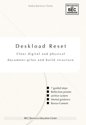Unlock clarity and productivity with the Deskload Reset Workbook — your step-by-step guide to clearing overwhelming document piles and building lasting organizational systems. Are you drowning in stacks of paperwork, digital chaos, and never-ending to-do lists? This workbook is designed to help busy professionals, entrepreneurs, and knowledge workers take back control over their workspace and workflow — without stress or overwhelm. Inside, you’ll find a practical, proven system that guides you through 7 progressive, easy-to-follow steps. From making your hidden clutter visible to creating a personalized archive and time management strategy, each chapter combines actionable tasks, reflection prompts, and mini clarity moments to keep you motivated and moving forward. What makes this workbook unique? It’s not just about tidying up — it’s about building self-leadership and mindset shifts for sustainable change. The system addresses both physical and digital organization, recognizing today’s hybrid work environments. Designed for real life: no abstract jargon, just clear, simple, effective steps. Whether you’re a startup founder, a busy executive, or someone juggling multiple roles, this workbook empowers you to: Clear your desk and digital clutter Structure tasks and priorities Plan your day with focus and intention Create habits that reduce stress and boost efficiency Regain control and confidence over your work life Take the first step towards a calmer, more productive workday. Your reset starts with BEC workbooks.