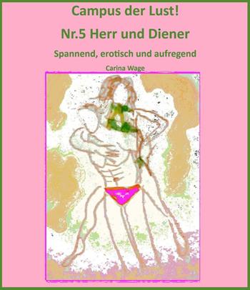 Campus der Lust! Nr.5 Herr und Diener Spannend, erotisch und aufregend Eine Geschichte von Carina Wage Im fünften Teil der Erotikreihe geht es spannend weiter: Pashtrik ist nun wieder in Gefangenschaft. Jennifer und Manfred bestrafen ihren Lustknaben für seinen Fluchtversuch mit ausgefallenen Sex-Spielchen. Ein Sex-Abenteuer jagt das nächste! Er steht ihnen wie gehabt zu Verfügung, aber nun wissen Rina und Henric wo ihr Liebster ist und arbeiten an seiner Befreiung. Derweil findet die Polizei, Rinas Mordopfer in dem Hotelzimmer und ermittelt. Auch Jimena tritt wieder in Erscheinung, wird sie es dieses Mal schaffen sich zu rächen?