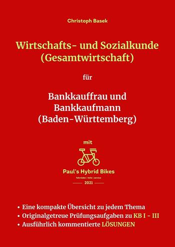 Dieses Buch ist genau das Richtige, um dich während deiner Ausbildungszeit effektiv und zeitsparend für Klassenarbeiten in Gesamtwirtschaft und für die Abschlussprüfung „Wirtschafts- und Sozialkunde“ vorzubereiten. Es enthält: 9 prüfungsrelevante Aufgaben zu Kompetenzbereich 1, 9 prüfungsrelevante Aufgaben zu Kompetenzbereich 2 und 9 prüfungsrelevante Aufgaben zu Kompetenzbereich 3. Zusätzlich sind alle Themen jeweils auf einer Seite übersichtlich zusammengefasst. Zudem sind alle Aufgaben mit einer prüfungsgerechten Bearbeitungszeit und ausführlich kommentierten Lösungsvorschlägen versehen. Das Buch wird durchgehend von Paul Hybrid begleitet, der das Unternehmen "Paul's Hybrid Bikes e. K." leitet. Paul's Unternehmen verkauft neben selbstgebauten Fahrrädern auch Handelswaren wie Fahrradhelme oder Fahrradbekleidung.