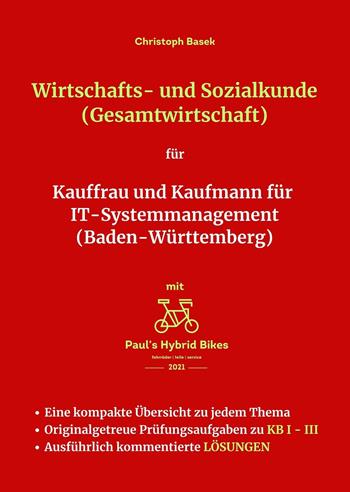 Dieses Buch ist genau das Richtige, um dich während deiner Ausbildungszeit effektiv und zeitsparend für Klassenarbeiten und für die Abschlussprüfung „Wirtschafts- und Sozialkunde (Gesamtwirtschaft)“ vorzubereiten. Es enthält 27 prüfungsrelevante Aufgaben zu WiSo (Gesamtwirtschaft) aus den Kompetenzbereichen 1 bis 3. Zudem sind alle Themen jeweils auf einer Seite übersichtlich zusammengefasst. Alle Aufgaben sind mit einer prüfungsgerechten Bearbeitungszeit und ausführlich kommentierten Lösungsvorschlägen versehen. Das Buch wird durchgehend von Paul Hybrid begleitet, der das Unternehmen "Paul's Hybrid Bikes e. K." leitet. Paul's Unternehmen verkauft neben selbstgebauten Fahrrädern auch Handelswaren wie Fahrradhelme oder Fahrradbekleidung.