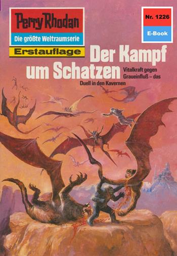 Vitalkraft gegen Graueinfluß - das Duell in den Kavernen Der Kampf um die Führung der Endlosen Armada ist im Sommer 428 NGZ längst zugunsten Perry Rhodans entschieden. Und Kazzenkatt, der Lenker des Dekalogs, hat bei seinen Angriffen auf die Endlose Armada und auf verschiedene Chronofossilien, die er zu pervertieren versuchte, nach anfänglichen Erfolgen eine ganze Reihe schwerer Niederlagen einstecken müssen. Ja, es kommt sogar dazu, dass zwei der drei Basen des Dekalogs in die Gewalt der Gegenseite geraten und für Kazzenkatts künftige Operationen somit nur noch die Basis LAGER verbleibt. Derartig in seiner Macht geschwächt, ist es dem Element der Lenkung auch nicht möglich, das wichtige Chronofossil Hundertsonnenwelt länger zu halten. Vielmehr muss Kazzenkatt sich mit dem Rest seiner Streitkräfte überstürzt zurückziehen und den Planeten wieder den Posbis überlassen. Auf dem Schauplatz Tiefenland jedoch - wobei wir ins Frühjahr 428 NGZ zurückblenden - sieht die Lage für die drei Ritter der Tiefe wenig ermutigend aus. Atlan, Jen Salik und Lethos-Terakdschan müssen das Herrschaftsgebiet Mhuthans, des Grauen Lords, schleunigst verlassen. Sie flüchten nach Schatzen, dem Museumsland. Doch die übermächtigen Horden Mhuthans sind bereits angetreten, um das Museumsland in ein Graugebiet zu verwandeln - und so entbrennt DER KAMPF UM SCHATZEN ...