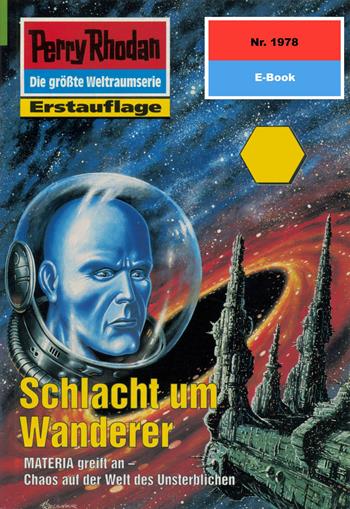 MATERIA greift an - Chaos auf der Welt des Unsterblichen In sechs verschiedenen Galaxien entsteht zur Zeit die Koalition Thoregon: ein Bündnis verschiedener Völker, das sich dem Frieden im Kosmos verschrieben hat. Bekämpft wird Thoregon von Shabazza und dessen Hintermännern, die derzeit an Bord der Kosmischen Fabrik MATERIA operieren. Vor allem Perry Rhodan und seine alten Weggefährten kämpfen an entscheidenden Stellen gegen Shabazzas Machenschaften. So versucht der Terraner derzeit mit der SOL den direkten Widerstand gegen MATERIA im Zentrum der Milchstraße zu organisieren, während sein alter Freund Atlan mit der GILGAMESCH in der fernen Galaxis Chearth gegen die Algiotischen Wanderer vorgeht. So erscheinen zahlreiche Ereignisse miteinander verknüpft zu sein, deren Ursprünge zum Teil Zehntausende von Jahren in der Vergangenheit liegen: vom Anbeginn Thoregons bis zur aktuellen Handlungszeit, in der Perry Rhodan als Sechster Bote der Koalition agiert. Aus der Vergangenheit des Solaren Imperiums wird auch ein junger Terraner in die relative Gegenwart der Koalition Thoregon versetzt: Lotho Keraete wird zum neuen Boten der Superintelligenz ES. Seinen ersten Einsatz erlebt er am Schwarzen Loch im Milchstraßenzentrum - es handelt sich um die SCHLACHT UM WANDERER... In sechs verschiedenen Galaxien entsteht zur Zeit die Koalition Thoregon: ein Bündnis verschiedener Völker, das sich dem Frieden im Kosmos verschrieben hat. Bekämpft wird Thoregon von Shabazza und dessen Hintermännern, die derzeit an Bord der Kosmischen Fabrik MATERIA operieren. Vor allem Perry Rhodan und seine alten Weggefährten kämpfen an entscheidenden Stellen gegen Shabazzas Machenschaften. So versucht der Terraner derzeit mit der SOL, den direkten Widerstand gegen MATERIA im Zentrum der Milchstraße zu organisieren, während sein alter Freund Atlan mit der GILGAMESCH in der fernen Galaxis Chearth gegen die Algiotischen Wanderer vorgeht. So scheinen zahlreiche Ereignisse miteinander verknüpft zu sein, deren Ursprünge zum Teil Zehntausende von Jahren in der Vergangenheit liegen: vom Anbeginn Thoregons bis zur aktuellen Handlungszeit, in der Perry Rhodan als Sechster Bote der Koalition agiert. Aus der Vergangenheit des Solaren Imperiums wird auch ein junger Terraner in die relative Gegenwart der Koalition Thoregon versetzt: Lotho Keraete wird zum neuen Boten der Superintelligenz ES "ausgebildet". Seinen ersten "Einsatz" erlebt er am Schwarzen Loch im Milchstraßenzentrum - es handelt sich um die SCHLACHT UM WANDERER ...