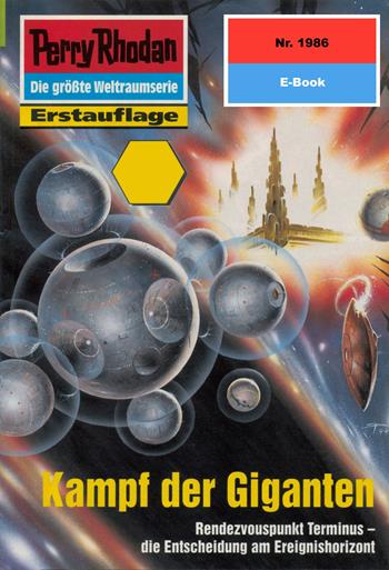 Rendezvouspunkt Terminus - die Entscheidung am Ereignishorizont Nach wie vor stehen sich im Frühjahr des Jahres 1291 Neuer Galaktischer Zeitrechnung im Zentrum der Milchstraße zwei Mächte gegenüber. In Dengejaa Uveso, dem riesigen Schwarzen Loch, verbirgt sich die Superintelligenz ES, der uralte Freund der Menschheit, vor den Zugriffen der Kosmischen Fabrik MATERIA. Von Bord der SOL aus versuchen Perry Rhodan und seine Begleiter, der Superintelligenz zu helfen, um damit größere Bedrohungen von den Völkern der Galaxis abzuwenden. Rhodan weiß, daß die mächtigen Wesen in MATERIA die Koalition Thoregon vernichten wollen - und damit auch jene Völker, die zu der Koalition gezählt werden. Die genauen Motive der Thoregon-Feinde sind dem Terraner nach wie vor nicht bekannt. Er kennt nur die grundlegenden Aussagen, die für die Koalition und ihr Ziel sprechen, den Frieden in einigen Bereichen des Kosmos durchzusetzen. Um Erfolg zu haben, müssen Rhodan und seine Freunde erst einmal ES helfen. Immerhin gelang es einem Kommando aus drei Galaktikern, an Bord von MATERIA grundlegende Informationen zu erhalten und den Gestalter Shabazza zu entführen. Mittlerweile ist dieser Feind der Menschheit tot. Nunmehr steht im Zentrum der Milchstraße die endgültige Etappe im großen Kampf zwischen Thoregon und MATERIA bevor - die Völker der Galaxis setzen ihre ganzen Flotten ein. Es kommt zum KAMPF DER GIGANTEN... Nach wie vor stehen sich im Frühjahr des Jahres 1291 Neuer Galaktischer Zeitrechnung im Zentrum der Milchstraße zwei Mächte gegenüber. In Dengejaa Uveso, dem riesigen Schwarzen Loch, verbirgt sich die Superintelligenz ES, der uralte Freund der Menschheit, vor den Zugriffen der Kosmischen Fabrik MATERIA. Von Bord der SOL aus versuchen Perry Rhodan und seine Begleiter, der Superintelligenz zu helfen, um damit größere Bedrohungen von den Völkern der Galaxis abzuwenden. Rhodan, der seit einiger Zeit als Sechster Bote von Thoregon aktiv ist, weiß, dass die mächtigen Wesen in MATERIA die Koalition Thoregon vernichten wollen - und damit auch jene Völker, die zu der Koalition gezählt werden. Die genauen Motive der Thoregon-Feinde sind dem Terraner nach wie vor nicht bekannt. Er kennt nur die Aussagen, die für die Koalition und ihr Ziel sprechen, den Frieden in einigen Bereichen des Kosmos durchzusetzen. Um Erfolg zu haben, müssen Rhodan und seine Freunde erst einmal ES helfen. Immerhin gelang es einem Kommando aus drei Galaktikern, an Bord von MATERIA grundlegende Informationen zu erhalten und den Gestalter Shabazza zu entführen. Mittlerweile ist dieser Feind der Menschheit tot. Nunmehr steht im Zentrum der Milchstraße die endgültige Etappe im großen Kampf zwischen Thoregon und MATERIA bevor - die Völker der Galaxis setzen ihre ganzen Flotten ein. Es kommt zum KAMPF DER GIGANTEN ...
