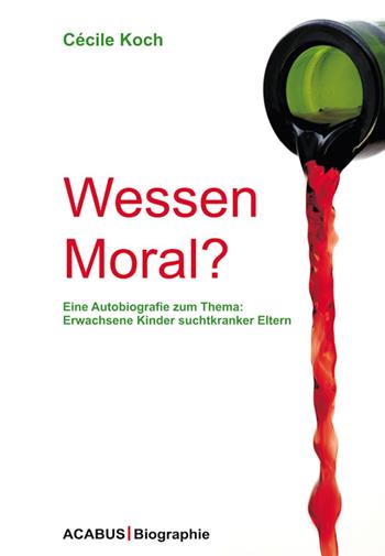 "Wessen Moral?" ist ein autobiografischer Roman über eine junge Frau, die retrospektiv das Verhältnis zu ihrer suchtkranken Mutter beleuchtet und zu verstehen versucht. Zunächst noch mit den Augen eines Kindes beobachtet die Autorin wie ihre Mutter Stück für Stück an Stärke und Lebenswillen verliert. Ihre einst attraktive, charmante und geistreiche Mutter verliert mit der Zeit die Kontrolle über ihr eigenes Leben und dasjenige ihrer Familie. Mit ausschlaggebend dafür ist die Hochzeit mit einem manisch-depressiven, medikamentenabhängigen Alkoholiker. Mehr und mehr lässt sich die Mutter von ihren eigenen Süchten leiten, bis sie schließlich an ihnen zerbricht. Cécile Koch versuchte lange, sich ihre verstörende Welt mit kindlicher Fantasie zurechtzurücken. Als Außenseiterin in der Nachbarschaft und Schule erfindet sie sich Freunde und erschafft sich eine eigene Realität. Mit zunehmendem Alter reift in ihr jedoch die Einsicht, dass sie der Welt, wie sie ist, nicht durch Träumereien entfliehen kann. Mehrmals reißt sie aus. Mit vierzehn Jahren reist sie sechs Wochen mit einem kleinen Wanderzirkus mit und bezahlt dafür mit dem einzigen, was sie hat - mit sich selbst. Nach ihrer unfreiwilligen Rückkehr bricht ihr der Boden unter den Füßen weg. Mit Gewalt versucht sie ihrem Leben Sinn einzuflößen, klammert sich an sinnlose Beziehungen, fängt selbst an zu trinken und zu kiffen und versucht mehrmals, sich das Leben zu nehmen. Parallel dazu setzt bei ihrer Mutter eine Leberzirrhose ein. Im Alter von fünfundvierzig Jahren stirbt die Mutter. Für die zu diesem Zeitpunkt neunzehn Jahre alte Autorin bedeutet der Tod der Mutter einen Wendepunkt. Sie fühlt, wie sehr sie leben möchte und macht sich auf, gesund zu werden. Mit einfachen, nüchternen Worten betrachtet die Autorin rückblickend ihr Leben ohne geborgene Kindheit und ihren Versuch, aus eigener Kraft erwachsen zu werden. Nicht die nachträgliche Betroffenheit steht im Vordergrund ihrer Schilderungen. Vielmehr geht es um den Mut und auch die Probleme, das eigene Leben anzunehmen und selbstbestimmt zu führen. Der Titel "Wessen Moral?" steht stellvertretend für alle Fragen nach den Gründen und der Gerechtigkeit der Welt, welche Cécile Koch beschäftigen.