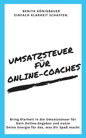 Bring Klarheit in die Umsatzsteuer für Dein Online-Angebot und nutze Deine Energie für das, was Dir Spaß macht Ist dies das richtige Buch für Dich? Du bist Coach, Berater, Trainer oder sonst ein Dienstleister, der für seine Kunden Probleme löst? Dein Unternehmen ist in Deutschland? Du bist kein (!) umsatzsteuerlicher Kleinunternehmer? Du bist mit Deinem Herzensthema (auch) online unterwegs? … und irgendwie ist da dieses ungute Bauchgefühl bei der Frage: wie mache ich das jetzt richtig mit meinen Rechnungen und der Umsatzsteuer bei meinem Onlineangebot? Dann bist Du hier goldrichtig, denn Dein Bauch hat immer Recht. Hier lauert tatsächlich eine ordentliche Portion Ärger, wenn Du Dich nicht richtig vorbereitest. Digitale Dienstleistungen, wie zum Beispiel Onlinekurse, können von jedem Gerät überall auf der Welt gekauft werden. Und jedes Mal klingelt das Geldsäckchen des Fiskus. Aber eben nicht nur das des heimischen, sondern auch das der anderen Länder. Wie Du als Anbieter damit umgehen kannst und wie Du Dich vor Ärger schützt, erfährst Du in diesem Buch. Aber ich kann Dich beruhigen, ganz so schlimm ist es wirklich nicht und es ist auch alles klar geregelt. Doch es ist an Dir, möglichst bevor Du loslegst, anhand dieser Regeln ein paar wichtige Entscheidungen zu treffen, damit Du froh und munter durch Dein Umsatzsteuerleben kommst. Dieses Buch liefert Dir - aus der Sicht des deutschen Umsatzsteuerrechts - die Grundlagen für genau diese Entscheidungen. "Eine tolle Hilfestellung!" - Eva Peters, www.onlinekurse-kompass.de Benita Königbauer schafft als Steuerberaterin das, was mir als Unternehmerin mit am Wichtigsten ist: Die Dinge sortiert zu haben und v.a. bei den Finanzen Ruhe im Kopf zu haben... keine schlaflosen Nächte, weil ich Sorge habe, ich könnte steuerliche oder buchhalterische Fehler machen... keine Unruhe mehr im Bauch, weil ich nicht auskunftsfähig zum Stand der unternehmerischen Konten bin. Endlich kann ich die Gewissheit und die Sicherheit haben, dass sie diese Dinge als mein "Chief Financial Officer" im Blick hat und für Klarheit sorgt. Steuern und Finanzen gehören zum Unternehmerdasein schlicht dazu - dennoch bin ich dankbar, sie in guten Händen zu wissen. Weil ich den Kopf dann wirklich frei habe für die Dinge, die mir eher liegen und mich weiter bringen. Danke Benita Königbauer!" - Franziska Ferber, Kinderwunschcoach in München