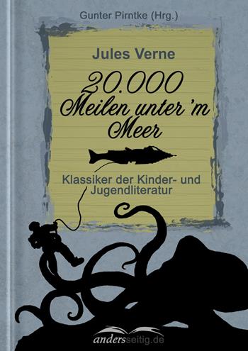 Jules Verne erzählt die Geschichte des Kapitän Nemo und seines Unterseebootes Nautilus, auf das der französische Professor Aronnax, sein Diener Conseil und der Harpunier Ned Land durch Zufall geraten. Gefangen an Bord der Nautilus sind sie gezwungen, auf ihr eine Weltreise unter Wasser mitzumachen. Dabei erleben sie allerlei Abenteuer; sie kämpfen gegen einen Riesenkraken und einen Hai, sie sehen Atlantis und sind an Bord, als Kapitän Nemo mit seiner Nautilus den Südpol erreicht.
