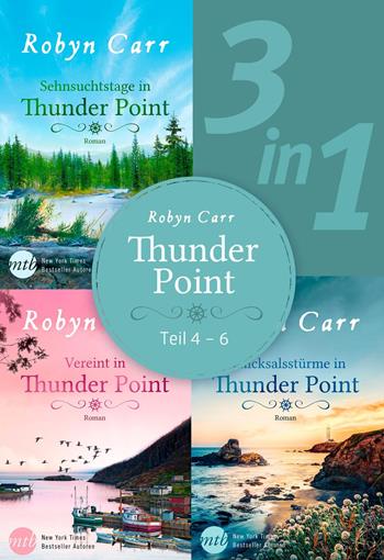 SEHNSUCHTSTAGE IN THUNDER POINT Nachdem FBI-Agentin Laine Carrington bei einem Undercover-Einsatz angeschossen wurde, nimmt sie sich eine Auszeit und kommt nach Thunder Point. Sie braucht die Sicherheit, die nur eine Kleinstadt bieten kann, und viel Ruhe, um zu entscheiden, wie es mit ihrem Leben weitergehen soll. Und vielleicht, ganz vielleicht kann sie in Thunder Point das finden, was sie in ihrem Leben sehnlichst vermisst: echte Freundschaft und möglicherweise sogar die Liebe. VEREINT IN THUNDER POINT Nach einer bitteren Enttäuschung braucht Peyton Lacoumette vor allem eins: einen Tapetenwechsel. Da kommt die Stelle in einer Arztpraxis im beschaulichen Küstenstädtchen Thunder Point gerade recht. Drei Monate will Peyton hier bei Dr. Scott Grant aushelfen und wieder zu sich selbst finden. Mit jedem Tag verblasst der Schmerz mehr, was auch an ihrem attraktiven Chef Scott liegt. Aber kann sie ausgerechnet mit diesem Mann einen Neubeginn wagen? SCHICKSALSSTÜRME IN THUNDER POINT Als Kinder und Jugendliche waren Iris McKinley und Seth Sileski unzertrennlich - bis zu jenem verhängnisvollen Abschlussball. Seit siebzehn Jahren herrscht Funkstille zwischen ihnen. Daher Iris war es nur recht, dass Seth für eine Sportlerkarriere das kleine Thunder Point verließ. Jetzt kehrt Seth nach all den Jahren in seinen Heimatort zurück und Iris ist gezwungen, sich ihren Gefühlen für ihren einstigen Vertrauten und heimlichen Schwarm zu stellen … "Robyn Carr schreibt wie immer ganz wunderbar über Figuren, die uns durch ihre menschlichen kleinen Schwächen nur noch sympathischer werden." Publishers Weekly "Für großartig erzählte Geschichten und wunderbar gezeichnete Charaktere tauchen Sie ein in Robyn Carrs Welt." New York Times-Bestsellerautorin Susan Elizabeth Phillips