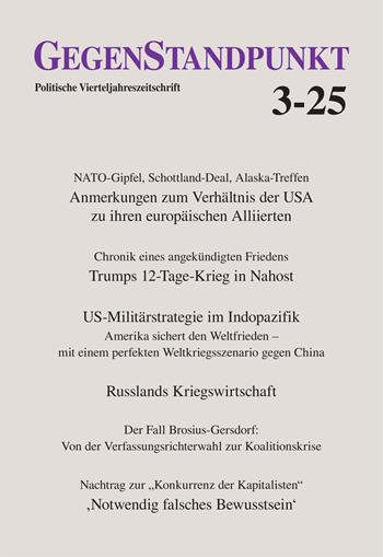 Bei allem öffentlich zelebrierten Mitleid mit dem schlimmen Schicksal der von den Kriegen in Osteuropa und im Nahen Osten betroffenen Völker vergisst die deutsche Politik selbstverständlich nie, dass bei diesen unschönen Affären die liebenswerte europäische Mittelmacht Deutschland ebenfalls ein Leidtragender ist. Erleidet sie doch Schäden an viel Edlerem und Höherem als so schnöden Dingen wie Leib und Leben: In Bezug auf den Ukraine-Krieg müssen Deutschlands Politiker erleben, dass der Machtwechsel in Washington all ihre kriegerische Entschlossenheit ins Abseits laufen lässt: Sie sind zwar immer noch bereit, die Ukraine dafür zu verschleißen, dass ihr Europa zu einer Kontinentalmacht aufwächst, die sich nach eigenem Gutdünken an jedem konkurrierenden Machtanspruch Russlands vergreifen kann. Aber alles Geld und alle Waffen, die sie dafür spendiert haben, erweisen sich nun nicht mehr als Investitionen in die goldene Zukunft einer europäischen Weltmacht, sondern womöglich als vertaner Aufwand: Trump sagt den US-Krieg gegen Russland ab und zerstört damit einstweilen die wunderbare Perspektive, unter amerikanischer Führung Russland als kontinentalen Rivalen zu entmachten und gleichzeitig Deutsch-Europa als kontinentale Vormacht zu etablieren. Wie bedauerlich! In Bezug auf den Nahost-Krieg muss die deutsche Republik ebenfalls einen bitteren Schlag verkraften: Alle erklärte Solidarität mit Israel, alle vorbehaltlose Unterstützung für dessen Krieg gegen die Hamas, alle Verrenkungen zur Rechtfertigung des unentwegt fortschreitenden Zerstörungswerks in Gaza können nicht verdecken, dass der höhere Sinn dieser Parteinahme für Deutschland ausbleibt: Einen irgendwie zufriedenstellenden strategischen Einfluss und Zugriff auf die geostrategisch eigentlich so perspektivreiche Gewaltlage gesteht Israel seinem deutschen Kumpanen einfach nicht zu. Stattdessen ist es schon wieder Amerika, das als einzige auswärtige Macht Einfluss entfalten kann. Und auch in diesem Fall tut Trump das explizit nicht länger als Dienst an den einstigen europäischen Partnern im Sinne eines gemeinsamen Bündnisses. Generationen von Bundesbürgern haben die NATO-Allianz als zivilisatorischen Höhepunkt der Menschheitsgeschichte feiern dürfen; Generationen von deutschen Politikern haben mit und in diesem Weltkriegsbündnis den imperialistischen Aufstieg ihrer Nation bewerkstelligt – und nun dies! Aber tüchtige deutsche Patrioten geben nicht auf! In der Mischung aus Entschlossenheit und Opportunismus sichten sie die Lage, definieren Feindschaften um, malen dazu passende Feindbilder neu und versuchen, auch aus Bedingungen, die sie sich fürs Erste schlicht gefallen lassen müssen, doch noch das Beste für ihre Nation zu machen. Das Regiment über ihr Volk haben sie ja. Dem sagen sie die Opfer an, die es bringen muss, damit die Nation nicht zum Opfer der neuen Weltlage wird. Und insofern Kritik daran ganz in der Sorge ums weitere Gelingen des deutschen Machtaufwuchses aufgeht, ist diese Zukunftszugewandtheit regierender Imperialisten weder perspektiv- noch mittellos. Deshalb kümmert sich der GegenStandpunkt auch in dieser Ausgabe darum, dass die fällige Kritik wenigstens theoretisch stattfindet.