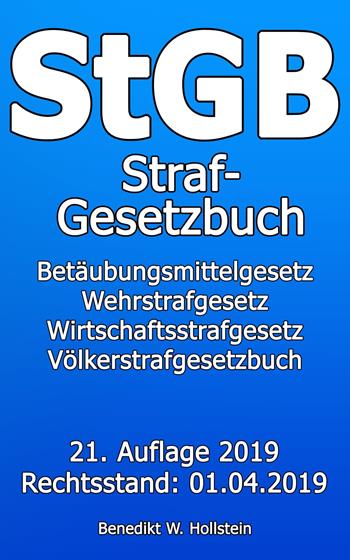 Strafgesetzbuch (StGB) inkl. Gesetz über den Verkehr mit Betäubungsmitteln (Betäubungsmittelgesetz - BtMG), Verordnung über das Verschreiben, die Abgabe und den Nachweis des Verbleibs von Betäubungsmitteln (Betäubungsmittel-Verschreibungsverordnung - BtMVV), Einführungsgesetz zum Strafgesetzbuch (EGStGB), Grundgesetz für die Bundesrepublik Deutschland, Jugendgerichtsgesetz (JGG), Gesetz über Ordnungswidrigkeiten (OWiG), Straßenverkehrsgesetz (StVG), Gesetz gegen mißbräuchliche Inanspruchnahme von Subventionen (Subventionsgesetz - SubvG), Gesetz über Versammlungen und Aufzüge (Versammlungsgesetz), Völkerstrafgesetzbuch (VStGB), Wehrstrafgesetz (WStG) und Gesetz zur weiteren Vereinfachung des Wirtschaftsstrafrechts (Wirtschaftsstrafgesetz 1954).21. Auflage 2019 Rechtsstand: 01.04.2019