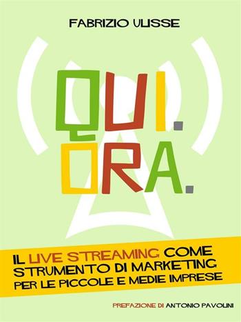 Questo libro nasce da una domanda: può il live streaming essere considerato uno strumento di marketing oltre che una semplice tecnologia abilitante? "Qui. Ora." intende rispondere a questa domanda, proponendo un viaggio attraverso casi di successo, buone prassi e tecnologie per aiutare le aziende ad imparare a raccontarsi in tempo reale. Prefazione di Antonio Pavolini.