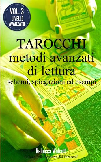 Tarocchi:Metodi Avanzati di Lettura Dopo il successo del primo volume "Tarocchi: 20 Metodi di Lettura-Base Vol.1, e del secondo volume "Tarocchi: 15 nuovi metodi di Lettura", la Collana "Alla scoperta dei Tarocchi"si arricchisce del terzo volume, dedicato alle tecniche di stesura più complesse. Questo terzo Manuale per la lettura dei Tarocchi presenta altri quindici metodi molto articolati e ben descritti, per imparare le tecniche di stesura e interpretazione degli Arcani Maggiori dei Tarocchi. Nell'ebook troverete molte indicazioni importanti sulla scelta del Mazzo da utilizzare, su come prepararlo per le stesure e su quali accorgimenti adottare per realizzare una lettura di Tarocchi corretta. Un capitolo intero sarà dedicato, poi, alle domande e risposte più frequenti sull'utilizzo dei Tarocchi. Si tratta di un testo che va oltre le semplici tecniche. L'autrice, infatti, vuole trasmettere agli studenti della bellissima disciplina dello studio degli Arcani, le linee guida più importanti. Per questo motivo si sofferma sull'importanza del 'codice etico' e sulla preparazione mentale ed emotiva da fare prima della stesura. L'Autrice Rebecca Walcott, da oltre 30 anni studiosa ed esperta di simboli, Tarocchi e Kabbalah Ebraica, ha affinato la sua sensibilità e la conoscenza delle discipline esoteriche attraverso l’approfondimento e lo studio di questi preziosi strumenti. Parallelamente alla Kabbalah ha condotto un ampio studio sugli archetipi e sull’iconografia degli Arcani Maggiori dei Tarocchi e, unendo le caratteristiche di queste discipline, ha condotto seminari e corsi per insegnare il suo metodo che consiste in una chiave di lettura interpretativa in grado di analizzare tutti gli aspetti della persona: fisico, psichico, emotivo, evolutivo e spirituale. È con questo metodo che realizza le “Analisi Tarologiche” personalizzate che le vengono commissionate attraverso il sito di Il Significato dei Tarocchi (www.significatodeitarocchi.it).