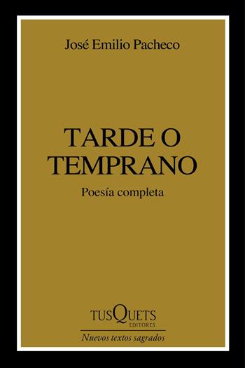 «Tarde o temprano a todos nos espera el naufragio». La poesía de José Emilio Pacheco es la expresión del tiempo que se va y no volverá. Constancia de la fugacidad, el poeta mira con atención y asombro cómo todo se desgasta. Su poesía es el registro de lo que un día fue nuestro y perdimos; de la vida que se escapa como arena entre los dedos. Tarde o temprano recoge los poemarios publicados por José Emilio Pacheco a lo largo de más de cincuenta años. Desde el primer libro, Los elementos de la noche (1958-1962), en el que se perciben ecos del simbolismo, hasta los poemas en prosa de su último libro, La edad de las tinieblas (2009), el poeta recorrió un largo camino en busca de la más alta y más clara expresión poética.