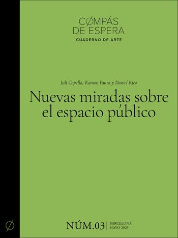 "Nuevas miradas sobre el espacio público" es el título del tercer cuaderno de arte de la colección Compás de espera, que pretende generar reflexión y debate en torno a temas de fondo de la actualidad cultural. El cuaderno es una publicación periódica o monográfico, está pensado para coleccionar, tiene un carácter propositivo y va acompañado de obra original reproducida de artistas. En este tercer número los autores abordan el tema del espacio público desde diferentes perspectivas, como son la urbanística, la histórica y la monumental, con el propósito de ofrecer una visión crítica, alternativa y actualizada de un concepto que desde sus orígenes ha resultado tan problemático cuanto imprescindible.