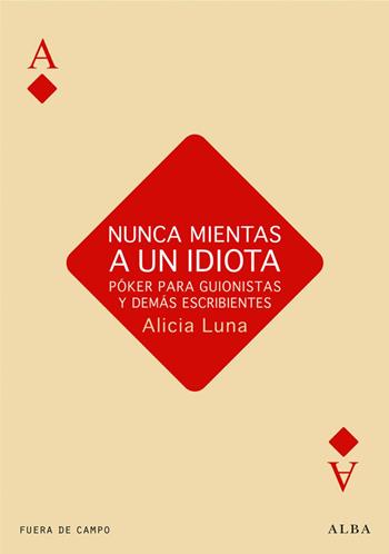 ¿Qué esperas encontrar en Nunca mientas a un idiota? ¿Comedia romántica? ¿Autoayuda? ¿Y si el libro lleva impreso el subtítulo Póker para guionistas y demás escribientes? Este libro tiene algo de juego porque a escribir también se aprende jugando, poniendo al máximo nuestra capacidad de ser originales, diferentes. Aprendiendo a defender una idea como si se tratara de una peligrosa jugada de póker: dobles parejas contra quien sospechas que lleva una pareja de ases. Escribir guiones supone generar tramas arriesgadas y a la vez verosímiles para los personajes que inventamos. Pero ¿cómo vas a crear un gran personaje sin saber el tipo de escritor que eres? ¿Arriesgado o convencional? ¿Astuto o ingenuo?Empecé siendo una jugadora calling station, de esas que juegan muchas manos porque no saben muy bien a qué están jugando y me he convertido en una jugadora gambler, a la que le gusta arriesgar porque le gusta jugar. Igual ante la página en blanco. Ahora valoro tanto mi trabajo de guionista que quiero escribir para sorprenderme y sorprender a los demás.En este libro descubrirás quién es el idiota al que se puede engañar en una mesa de póker y, cuando vayas a escribir tu guión, te divertirás poniendo a prueba tu talento con las mismas estrategias. ¿Lo tienes? Alicia Luna