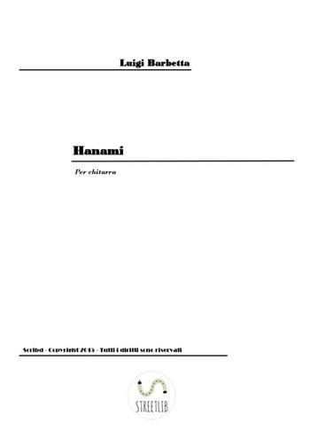 L' Hanami (letteralmente "ammirare i fiori") è la tradizionale usanza giapponese di godere della bellezza della fioritura primaverile degli alberi, in particolare di quella dei ciliegi da fiore giapponesi, i sakura. Quest’immagine ha fornito la suggestione per la composizione di questo brano, in cui l’utilizzo del primo modo del sistema pentafonico costituisce il materiale scelto per la realizzazione. La struttura del brano è costituita in un tema A (battute 1-8), B che costituisce uno sviluppo in forma di arpeggio (battute 9-32) e una conclusione che è in sostanza un ritorno di (battute 33-39). Dal punto di vista tecnico, il brano offre la possibilità di sviluppare abilità di fraseggio, specie nel tema in cui vi è la contrapposizione tra elementi melodici e di accompagnamento da differenziare in maniera decisa e di insistere sulla tecnica dell’arpeggio, con le prime due note di ogni posizione che devono essere suonate con il pollice: elemento questo che consente di lavorare sia sul tocco del pollice, per renderlo uniforme e amalgamato nel timbro e nel tempo con quello delle altre dita. Secondo un’ottica musicale, questa composizione offre la possibilità di immergersi in un mondo di suoni che, dal jazz più conosciuto all’animazione giapponese, si compenetra nella nostra memoria ed è legato indissolubilmente ai nostri ascolti.