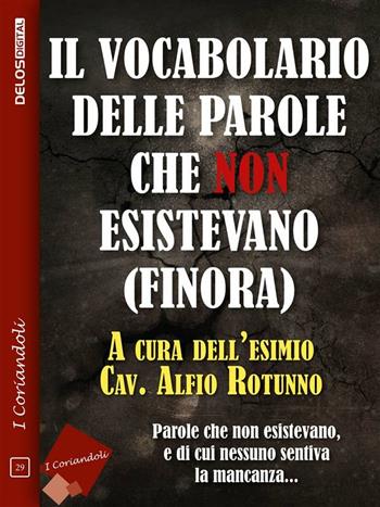 Saggi - saggio (49 pagine) - Un pregiato vocabolario contenente parole che non esistevano... e di cui nessuno sentiva la mancanza... Che l’umanità sia pronta o meno, ecco arrivare il cav. Alfio Rotunno con la sua opera più discussa e invidiata negli ambienti accademico-linguistici di mezzo mondo: Il vocabolario delle parole che non esistevano (finora), una delirante raccolta di lemmi paradossali, assurdi, insensati e inesorabilmente inutili, per ridere di noi e del mondo di concetti e parole in cui – spesso nostro malgrado – ci troviamo invischiati. Parole che non esistevano, certo, e di cui nessuno sentiva la mancanza… Finora! Della vita privata del Cav. Alfio Rotunno si sa ben poco. Da sempre schivo e geloso della propria privacy, il Rotunno ha saputo imporsi sulla scena culturale europea grazie all’acutezza di pensiero e all’indefinibile natura delle sue opere. Difficile offrirne una definizione esaustiva: chi lo considera un genio, chi un ciarlatano, chi uno spirito troppo elevato per essere compreso dai pensatori del nostro tempo. Nelle cronache lo si incontra nelle vesti di scienziato, di novelliere, di inventore, di prestigiatore, addirittura di impagliatore di sedie, immaginifico e forbito oltre il lecito, fine conoscitore dell’esperanto arcaico e del patrimonio folkloristico orale in braille, all’insegna di una multimedialità antropologica senza precedenti. Tra i suoi lavori più ambizioni e misconosciuti ricordiamo Mondo Rotunno, ovvero: Il Manuale dei Manuali e la raccolta Racconti che avrebbe voluto scrivere De Amicis (ma poi ha pensato che era meglio di no).