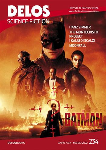 Fantascienza - rivista (77 pagine) - Il numero di marzo della nostra rivista con uno speciale su The Batman, articoli sul tema delle pandemie nella science fiction, il film Moonfall e con un racconto di Franco Ricciardiello. Se nel mondo dei cinecomic Spider-Man: No Way Home è stato il film evento del 2021, The Batman di Matt Reeves si candida ad essere quello del 2022. Il film che vede nei panni dell’Uomo Pipistrello l’attore Robert Pattinson sta riscuotendo un successo enorme presso i fan di Batman e il grande pubblico. La pellicola verrà certamente ricordata per essere la versione più nera e noir di tutti i Batman cinematografici e non solo. A questo film abbiamo dedicato lo speciale di questo numero di Delos Science Fiction, il 234, con un approfondimento di Arturo Fabra sul film e su ciò che il regista intendeva realizzare nel momento in cui ha ricevuto l’incarico di dirigere la nuova versione del Cavaliere Oscuro sul Grande Schermo. Infine, abbiamo intervistato Alessandro Bottero, critico e traduttore di capolavori come Batman – Il Ritorno del Cavaliere Oscuro, Batman Anno Uno, per raccontarci il “suo” Batman e delle evoluzioni dal fumetto al cinema. Nei servizi, lo scrittore Franco Piccinini ci racconta i romanzi di fantascienza a tema epidemie e contagi, mentre non potevamo non occuparci di Moonfall, il nuovo film di Roland Emmerich che a quanto pare non ha riscosso grandi consensi. Infine, parliamo dei nuovi romanzi dello scrittore Fabio Carta, Ambrose (Delos Digital) e Armilla meccanica 1: Nel cielo (Inspired Digital), a metà tra fantascienza militare e cyberpunk. Di Ambrose vi proponiamo anche un’anteprima. Nella sezione rubriche, segnaliamo il nuovo romanzo di John Scalzi, uscito sul mercato anglosassone, le migliori colonne sonore fantascientifiche di Han Zimmer, il nuovo romanzo di Edoardo Volpi Kellermann, dal titolo The Montecristo Project: La prima colonia (Delos Digital) e un approfondimento di Giuseppe Vatinno su Essi Vivono!, il capolavoro di John Carpenter. L'editoriale è di Fabra mentre il racconto di questo mese è di Franco Ricciardiello e s’intitola Agathea, Alphaville, Atlantic Cité. Rivista fondata da Silvio Sosio e diretta da Carmine Treanni.