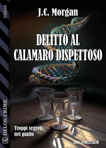 Thriller - racconto lungo (31 pagine) - Troppi segreti nel piatto... Omicidio o fatalità? Questo si chiedono i due nemici-amici quando arrivano al famoso ristorante Il Calamaro Dispettoso, trasformato in una scena del crimine. Il primo è il brillante Sostituto Procuratore Laganà, l'altro è il tenace ispettore Greco. Il morto, invece, era un famoso scienziato sul punto di brevettare una scoperta rivoluzionaria nel campo della genetica. Ricostruire le tessere di questo puzzle non sarà facile, a ogni indizio tutto viene rimesso in gioco perché nulla è come sembra e gli interessi attorno al brevetto sono molti e diversi. Chi lo vuole a ogni costo e chi lo giudica un abominio contro natura. Laganà e Grego dovranno mettere da parte le loro rivalità per assicurare il colpevole alla giustizia. J.C. Morgan è lo pseudonimo di un collettivo di scrittori appassionati del genere giallo. Alcuni dei loro racconti sono già apparsi in appendice al Giallo Mondadori. Questa è la prima pubblicazione per Delos Digital. Delitto al Calamaro Dispettoso è arrivato terzo classificato al Premio Giallo Luna Nero Notte, Giallo Mondadori, nel 2021.