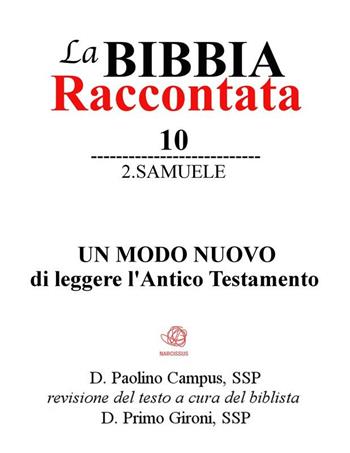 2.SAMUELE, decimo libro della Bibbia e quinto del gruppo dei 16 Libri Storici, rientra nel progetto di presentare i 46 testi dell'Antico Testamento, - raccontandone, come una cronaca, il contenuto nella sua interezza; - citando solo le frasi più significative dei vari capitoli; - fornendo alcuni brevi ed essenziali commenti per avere la chiave di lettura dei punti più problematici.