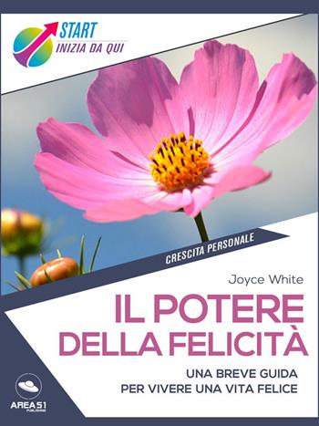 La collana STARTAudio ed ebook per cominciare il tuo cammino di crescita personale, per conoscere, allenare ed esprimere al massimo il tuo potenziale e migliorare la qualità della tua vita.Lo spirito della scoperta, dell’inizio di una nuova avventura, dell’avvio di un processo di cambiamento si ritrova nella collana Start di Area51 Publishing, che raccoglie brevi saggi dal taglio pratico che ti aiutano a iniziare il tuo percorso nella crescita personale.La felicità non è magia, né è uno stato miracoloso, non appartiene a pochi eletti fortunati. Spostarsi da uno stato in cui viviamo molte emozioni negative (come l’ansia e la paura) a uno stato di felicità richiede solo impegno e coraggio. Se vuoi essere felice, devi accettare la possibilità che puoi esserlo. La felicità è una scelta, puoi allenarti a essere felice scegliendo, di volta in volta, di pensare e agire consapevolmente per ottenerla in ogni ambito della tua vita.Con questo breve ebook avrai una serie di suggerimenti, consigli pratici e stimoli operativi per fare della felicità il tuo stato e vivere la vita con il sorriso.Contenuti dell’ebook in sintesi. Cosa è la felicità? . La felicità è l’antidoto alla paura. La felicità è una scelta. Consigli pratici per essere felicePerché leggere questo ebook. Per scoprire che la felicità è una condizione che si può scegliere e mantenere . Per avere una lettura utile e corroborante per affrontare le sfide quotidiane. Per scegliere la felicità ogni giorno e migliorare la qualità della vita imparando a vivere ogni momento in profondità e con consapevolezzaA chi si rivolge l’ebook. A chi vuole un piccolo saggio di crescita personale per il proprio benessere, l’equilibrio mentale e il bilanciamento emotivo. A chi desidera un breve testo da leggere e rileggere per conoscere e mantenere vivo uno stato di calma, serenità e gioia. A chi ha bisogno di motivazione e carica per affrontare al meglio le grandi e piccole sfide quotidiane