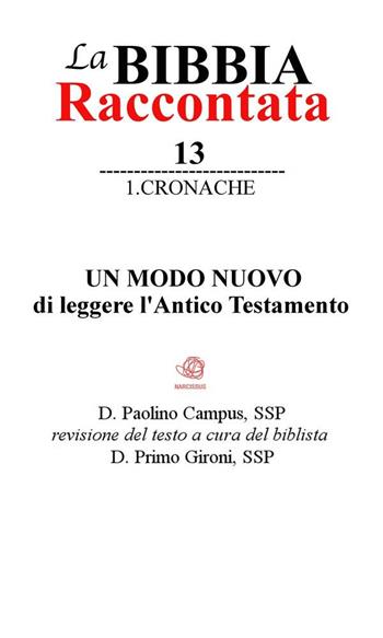 1.CRONACHE, tredicesimo libro della Bibbia e ottavo del gruppo dei 16 Libri Storici, rientra nel progetto di presentare i 46 testi dell'Antico (o Primo) Testamento, - raccontandone, come una cronaca, il contenuto nella sua interezza, - citando solo le frasi più significative dei vari capitoli, - e fornendo alcuni brevi ed essenziali commenti per avere la chiave di lettura dei punti più problematici.