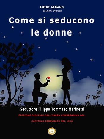 Ricoverato in ospedale, Marinetti compone: Come si seducono le donne**, un susseguirsi di confessioni, esibizioni nonchè teorizzazioni sull’immaginario erotico femminile (dei primi del 1900) e su come sfruttarne i punti fragili per ottenere le grazie del maggior numero di donne possibile.** La pubblicazione dell’opera fu annunciata con un intensa campagna pubblicitaria sulla rivista “l’Italia Futurista, n. 25 anno secondo del 5 agosto 1917 e il libro uscì a Firenze a settembre per le «Edizioni da Centomila Copie». In questa edizione la censura “imbianca” sei pagine del capitolo VIII, La donna e la complicazione, parte che è stata riprodotta in questa edizione digitale*.* Una seconda edizione esce nei primi mesi del 1918 con una integrazione ma anche questa venne censurata. Nello stesso anno una nuova edizione fu pubblicata, edizione ricopertinata con un disegno a colori di Mario Bazzi e la dicitura “Edizioni Excelsior” (casa editrice inesistente, l’Excelsior era il nome dell’Hotel di Milano dove alloggiava Emilio Settimelli, carissimo amico di avventure del Marinetti nonché protagonista del secondo futurismo fiorentino). Il Marinetti afferma di aver scritto la prima parte di Come si seducono le donne durante il suo ricovero a Udine (maggio 1917), smentendo così la sua nota delle precedenti edizioni (1917 e 1918), nella quale spiegava di aver dettato il libro a Corra nel settembre 1916, e di aver poi corretto le bozze a Udine. La parte censurata, fu pubblicata poi nell’edizione del 1920 con il titolo "Come si seducono le donne e si tradiscono gli uomini", casa editrice Sonzogno - Milano e racconta le avventure di una suora che per il bene del convento si concede a un giovane allevatore di maiali il quale per ricompensare le dolci e sensuali attenzione della monaca, in cambio gli offre dei porcellini. Si comprende che il giovanotto, abile amante non era altro che Satana in persona. Nonostante l’intervento della censura l’opera ebbe molto successo, nel 1926 venne pubblicata in Buenos Aires una traduzione in lingua Spagnola a cura di Julio S. Gimenez: “Como se seducen las mujeres y se traicionan los hombres - Coleccion Afrodita”, ristampata come “Nueva Coleccion Afrodita” negli anni 1927, 1933 e 1940. Quest’ultima ristampa fu in modo definitivo sottoposta a sequestro con decreto del 27 maggio 1941. “Cosa bisogna avere per sedurre tante donne? Avere tutte le qualità di un futurista italiano. Corpo agile, forte, aggressivo. Muscoli militarizzati. L’eleganza e i capelli meravigliosi di Bruno Corra, oppure la calvizie elettrica di Marinetti. Potente vitalità. Tutta la scala dei semitoni nella voce maschia. (…) Il denaro necessario per prendere una carrozza o un’automobile di piazza e affittare una camera d’albergo. Forti attitudini oratorie. Ingegno novatore. Saper dare uno schiaffo decisivo a tempo e soprattutto coraggio, coraggio, volontà, coraggio, coraggio. Non essere mai pedante, professorale, culturale..... Buon libro