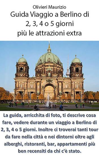 La guida, arricchita di foto, ti descrive cosa fare, vedere durante un viaggio a Berlino di 2, 3, 4 o 5 giorni più le attrazioni extra. Inoltre ci troverai tanti tour da fare nella città e nei dintorni oltre agli alberghi, ristoranti, bar, appartamenti più ben recensiti da chi c'è stato.