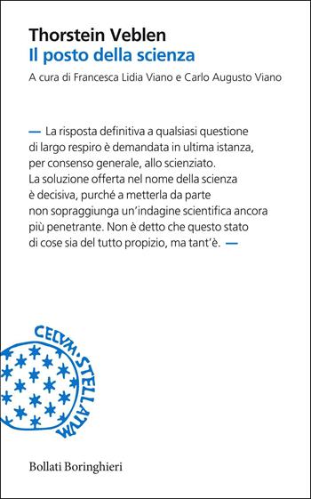 Qual è il ruolo della scienza nella società contemporanea? Questa domanda ritorna periodicamente nel dibattito pubblico, che si parli di biotecnologie, di fisica nucleare o di matematica finanziaria. Si tratta di una domanda antica, che ha spesso diviso il mondo tra fautori e detrattori del pensiero scientifico e che nel nostro paese, in particolare, ha visto la forte contrapposizione tra un fronte idealista e religioso da un lato e uno positivista e pragmatista dall'altro. È sorprendente dunque che in un dibattito così serrato non siano mai stati pubblicati in italiano i due contributi cruciali che proponiamo in questo volume, scritti da Thorstein Veblen tra il 1906 e il 1908, nel contesto tumultuoso della seconda industrializzazione. Oggi questo libro svela un Veblen inedito, non economista ma epistemologo, il cui acume ha ancora molto da insegnarci.