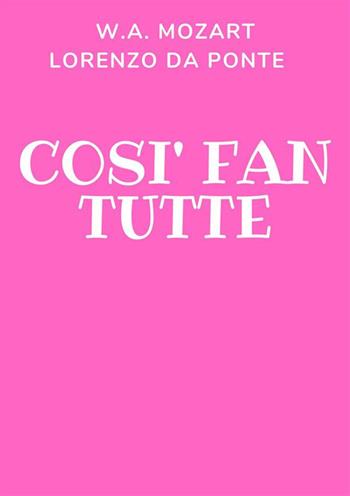 Libretto d'opera di Così fan tutte. Versione integrale della terza e ultima creatura del duo Mozart-Da Ponte, arricchita in appendice da un percorso di schede illustrate su storia, aneddoti e curiosità. Ferrando e Guglielmo sono alle prese con le loro fidanzate, Dorabella e Fiordiligi, sorelle. innamorati e ricambiati sono indotti da Don Alfonso a testare la fedeltà delle loro amate. Ne nasce una commedia brillante, un classico che continua ad essere amato in tutto il mondo. Sia il formato tascabile che la versione ebook sono pensati tanto per una lettura domestica che per quella di sala.