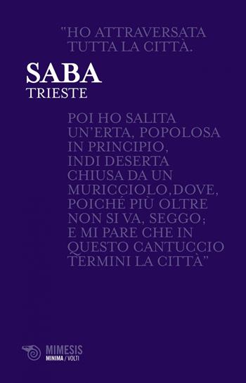 Per la prima volta sono qui pubblicate le tre differenti stesure (1912 – 1921 – 1945) della poesia più famosa di Umberto Saba: “Trieste”, da cui partire per leggere lo scrittore - profondamente parte della terra giuliana - alla luce della plurale complessità della sua città, al contempo italiana, slovena e mitteleuropea. Un universo emotivo, sociale, politico e culturale capace di nutrire i versi che raccontano piazze, vie, rive e mare, sferzate dalla bora e accarezzate dal sole, là dove si infrange l’ultima onda del Mediterraneo.