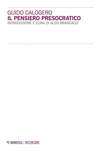 Guido Calogero è stato uno degli interpreti più importanti e innovativi del pensiero presocratico del Novecento. Il suo interesse per i Presocratici nasceva da una visione organica della logica antica considerata nell’intera vicenda della sua determinazione storico-teoretica. Era quindi intimamente connessa con l’interpretazione che del pensiero di Aristotele Calogero offrì nei suoi Fondamenti della logica aristotelica del 1927. In questo libro egli delineava le due diverse istanze della logica noetica, fondata sulla pura appercezione intellettuale del contenuto noetico, e della logica dianoetica, articolata nella sintesi predicativa che ha per oggetto il sinolo indissolubile di materia e forma, i cui remoti ma chiari precedenti giacciono nel pensiero presocratico, nella “coalescenza” (che non significa identità) di logica, ontologia e linguaggio, e nei due diversi imperativi della logica della visione e della logica della dizione. Questo volume raccoglie tutti gli scritti dedicati da Calogero al pensiero presocratico, e li fa precedere da una Introduzione che ne chiarisce i presupposti teorici e i nessi essenziali. Esso comprende tutte le voci della Enciclopedia Italiana (finora mai rese disponibili in un volume autonomo), tre recensioni, una delle quali monumentale, e infine saggi di grande rilievo dedicati a Senofane, Parmenide, Zenone e Gorgia. Per la ricchezza del suo contenuto il libro costituisce un’ampia introduzione al pensiero presocratico visto nella complessità della sua tessitura.