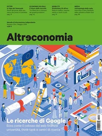 In questo numero: - Inchiesta su Google: ecco come il colosso del web finanzia centri di ricerca, universita` e think-tank in Europa; - Reportage dalla Cina, dove la reputazione del “buon cittadino” sarà disegnata dai big data; - Tre anni fa iniziava l’Expo di Milano. Facciamo il punto sul futuro dell’area (che non e` ancora scritto); - Il racconto tra i venezuelani in attesa sul ponte della speranza. Il 20 maggio si terranno le elezioni presidenziali; - Limbo Mozambico: reportage dall’unico campo di accoglienza del Paese, quello di Maratane, dove i profughi africani sono circa 9.500; - Filiera corta e biodiversa. Il futuro della nocciola. Viaggio nei distretti che coltivano e trasformano i frutti in modo artigianale; - Commercio equo e solidale, la rivoluzione in casa. La storica decisione della World Fair Trade Organization sui produttori del “Nord” del mondo; - Pedoni e ciclisti si riprendono la strada grazie alle “zone 30”. Così si possono ridurre traffico, rischi e inquinamento, restituendo gli spazi ai cittadini; - La transumanza che resiste, tra memoria e riscoperta. Le pratiche collettive di tutela e riscoperta del territorio fatte camminando insieme agli animali; - Il cinema della Resistenza: intervista a Paola Olivetti, direttrice dell'Archivio nazionale cinematografico della Resistenza di Torino; - Sara Zambotti, antropologa e conduttrice di “Caterpillar” su Radio2, ci spiega come i media costruiscono il nostro immaginario; - Il crack della Banca Popolare di Vicenza a teatro. Intervista al cantastorie e regista, Andrea Mazzacavallo; e tanto altro ancora...