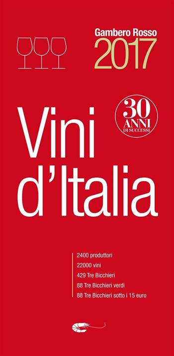 La più autorevole guida del settore dell’enologia italiana, giunta alla sua 30sima edizione, risultato del lavoro di uno straordinario gruppo di degustatori, oltre sessanta, che hanno percorso il Paese in lungo e in largo per selezionare solo i migliori: 22mila vini recensiti prodotti da 2400 cantine. Indirizzi e contatti, ma anche dimensioni aziendali (ettari vitati e bottiglie prodotte), tipo di viticoltura (convenzionale, biologica, e biodinamica o naturale), informazioni per visitare e acquistare direttamente in azienda, sono solo alcune delle indicazioni che s’intrecciano con le storie dei territori, dei vini, degli stili e dei vignaioli. Ogni etichetta è corredata dall'indicazione del prezzo medio in enoteca, delle fasce di prezzo, e da un giudizio qualitativo che si basa sull'ormai famoso sistema iconografico del Gambero Rosso: da uno fino agli ambiti Tre Bicchieri, simbolo di eccellenza della produzione enologica. Sono 429 i vini che in questa edizione hanno ottenuto il più alto riconoscimento da parte dei nostri esperti. Presenti anche i Tre bicchieri verdi, le eccellenze che si distinguono perché prodotti con un'attenzione particolare all'ambiente e all'agricoltura biologica. Vini d’Italia 2017 è la guida insostituibile per tutti coloro che operano nel settore o nutrono interesse verso il vino italiano di qualità.