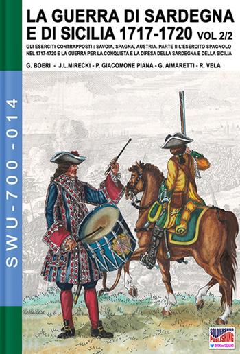 Nella trattazione, in tre parti, delle vicende che ebbero luogo nelle isole di Sardegna e di Sicilia tra il 1717 ed il 1720 si presenterà lo svolgersi delle operazioni militari che videro contrapposti l’esercito e la marina spagnola e quelli austriaci e sabaudi e un’analisi delle forze militari impiegate. Filippo V Borbone, Re di Spagna, non si era rassegnato alla situazione che si era creata alla fine della guerra per la successione spagnola, che aveva visto l’occupazione da parte degli austriaci dei possedimenti spagnoli in Italia (Milano, Sardegna, Regno di Napoli) nonché quello di Sicilia ceduto a Vittorio Amedeo II di Savoia e, alla prima occasione (l’impero austriaco era impegnato in una durissima guerra contro i Turchi) inviò un fortissimo corpo di spedizione, che occupò un dopo l’altra la Sardegna e la Sicilia. Le potenze garanti dei trattati di pace del 1714 e dell’assetto che ne era conseguito (in primis la Gran Bretagna e la Francia) reagirono. La Gran Bretagna inviò una potente flotta nel Mediterraneo, che ribaltò il rapporto di forze e praticamente impedì che l’esercito spagnolo nelle due isole potesse ricevere soccorsi. L’impero austriaco da Milano e da Napoli raccolse ed inviò un numero sempre crescente di truppe, che invasero a loro volta la Sicilia (il cui dominio era stato nel frattempo ceduto da Vittorio Amedeo all’Austria in cambio del regno di Sardegna). La coalizione europea costrinse alla fine la Spagna a rinunciare alla sua avventura ed evacuare le due Isole. Questo secondo libro sulla Guerra di Sardegna e di Sicilia (1717-1720) (a sua volta diviso in due tomi) si incentra sulla partecipazione dell’esercito spagnolo alla vicende della guerra, combattuta per quasi quattro anni sulle due isole mediterranee, sulla sua organizzazione e le sue uniformi. Il primo volume della serie (già pubblicato) ha delineato nell’insieme la situazione complessiva entro la quale si sono svolti gli eventi del conflitto ed ha trattato l’evolversi delle vicende, viste dalla parte sabauda, mentre il terzo volume riguarderà l’esercito austriaco e la flotta britannica.
