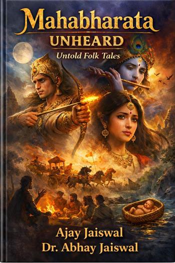 Mahabharata Unheard Untold Folk Tales by Ajay Jaiswal and Dr. Abhay Jaiswal unveils the hidden layers of India's greatest epic, drawing from oral traditions, regional folklore, and forgotten narratives passed down by bards, grandmothers, and village storytellers. This self-published 2025 edition (ISBN 978-93-344-5966-1) goes beyond the canonical Sanskrit text to explore lesser-known tales like Sahadeva's wisdom and sacrifice, Iravan's tragic offering, Barbarika's story, Vikarna's stand for justice, and the mystical origins of Shakuni's dice. Chapters such as "The Whispers of Jaya," "Arjuna and Urvashi's Celestial Encounter," and "The Mysteries of the Maha-prasthana" reveal alternative perspectives on dharma, karma, and human struggles, blending philosophy with vibrant folk retelling from regions like Kurukshetra, Varanasi, and Ujjain. Dedicated to generations of storytellers, the book celebrates the Mahabharata as a living tradition, offering fresh insights into characters' emotional depths and moral ambiguities for seekers of cultural heritage and epic wisdom.