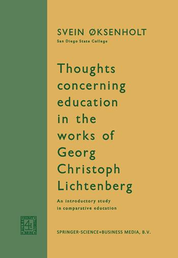 This is an investigation of the thoughts concerning education in the writings of one of the most original educators of the eighteenth century. Unappreciated and largely overlooked - as was Schopenhauer - by the contemporary educators, Lichtenberg nevertheless presented his generation, and generations to come, with some of the most useful (a great life aim of Horace Mann!) suggestions pertaining to education that may possibly be found anywhere in the annals of classical edu cation. Beginning with a biographical sketch of Lichtenberg, it presents an analysis of his philosophy of education, discusses Lichtenberg's thoughts on pedagogy and curriculum, analyzes his conception of morals and religion to the extent that these ideas are specifically related to education, examines his notions of educational psychology, determines Lichtenberg's views on British education in the eighteenth century, compares some of Lichtenberg'S educational ideas in the works of contemporary thinkers and educators, notably Schopenhauer, J ames and Dewey. A concomitant aspect of this book is a portrayal of Lichtenberg as found in his works, viz., as a student, professor, philosopher, educator, moralist, psychologist, comparative educationist, as a searcher for absolute educational truth - attainable only in a world to come. San Diego State College SVEIN 0KSENHOLT, PH. D.