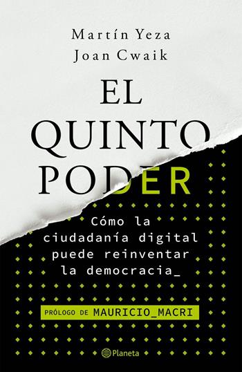 Cómo hackear la democracia para actualizarla La democracia que nos gobierna, imaginada para un mundo analógico e inexistente, hace sus esfuerzos para sobrevivir en una realidad digital que viaja a la velocidad de la luz. El Quinto Poder ilumina con ejemplos concretos y mirada crítica, por qué seguimos atrapados en un sistema que se mueve con la lentitud de la burocracia mientras sus ciudadanos viven interconectados en tiempo real. Corrupción estructural, instituciones paralizadas, trámites imposibles, brechas educativas insalvables, salud pública fragmentada, justicia sobresaturada, infraestructuras que se desmoronan y un Estado que se paraliza ante los problemas en vez de resolverlos: ese es el firmware obsoleto que intentamos usar en pleno siglo XXI. Con estilo claro y universal, los autores proponen hackear la democracia para actualizarla. Pensar al ciudadano como nodo, al dato como derecho y a la innovación como obligación. Un texto inteligente y moderno que conecta casos locales y globales con la convicción de que el cambio no se decreta: se programa, se prueba y se escala. Yeza y Cwaik demuestran que para solucionar los problemas de la democracia contemporánea no alcanza con la voluntad política, hace falta aplicar tecnología e inteligencia: actualizar el sistema y a nosotros con él.