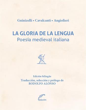 El mismo título, La gloria de la lengua, repite una cita de La Divina Comedia, con las cual se abre el Prólogo. En ella, Dante Alighieri alude elogiosamente a Guido Guinizelli, fundador del "dolce stil nuovo", y a Guido Cavalcanti, primer gran poeta lírico de Italia y figura máxima de la misma escuela medieval, de la cual desciene el propio autor de La Divina Comedia. Esta antología bilingüe de la mejor poesía italiana del siglo XIII se completa con otro figura señera y personal, pero antípoda: Cecco Angiolieri, su contemporáneo. Mientras ambos Guidos fueron de noble abolengo, con intensa participación militar y política, Cecco llevó una vida irregular, fue encarcelado y sus cinco hijos debieron renunciar a su herencia, cargada de deudas. El volumen constituye una novedad en nuestra lengua, ya que se trata de tres grandes figuras poco divulgadas, en gran medida por lo dificultoso de su traducción.