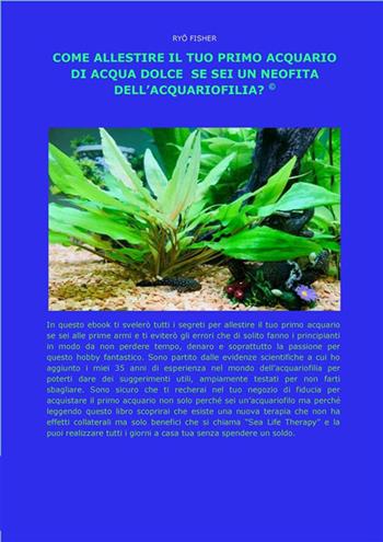 In questo ebook ti svelerò tutti i segreti per allestire il tuo primo acquario se sei alle prime armi e ti eviterò gli errori che di solito fanno i principianti in modo da non perdere tempo, denaro e soprattutto la passione per questo hobby fantastico. Sono partito dalle evidenze scientifiche a cui ho aggiunto i miei 35 anni di esperienza nel mondo dell'acquariofilia per poterti dare dei suggerimenti utili, ampiamente testati per non farti sbagliare. Sono sicuro che ti recherai nel tuo negozio di fiducia per acquistare il primo acquario non solo perché sei un'acquariofilo ma perché leggendo questo libro scoprirai che esiste una nuova terapia che non ha effetti collaterali ma solo benefici che si chiama "Sea Life Therapy" e la puoi realizzare tutti i giorni a casa tua senza spendere un soldo.