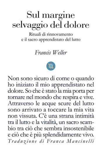 Francis Weller ci conduce in un itinerario controcorrente, invitandoci “sul margine selvaggio del dolore”, dove impariamo a coltivare l’arte del lutto e a riconoscere la vitalita`, la comunione con gli altri e con il pianeta che possono emergere quando smettiamo di temere la perdita e la accogliamo come parte essenziale del vivere. In una cultura sempre piu` disallineata dai bisogni dell’anima – segnata da modelli di amnesia e anestesia che indeboliscono la nostra capacita` di attraversare il dolore personale e collettivo – Weller ci aiuta a riscoprire cio` che la modernita` ha oscurato. Ci mostra come il lutto sia sempre stato un’esperienza comunitaria e quanto abbiamo bisogno del contatto curativo degli altri per metabolizzare pienamente il nostro dolore. Francis Weller mette in luce come spesso nascondiamo la nostra disperazione al mondo, coprendola di un manto segreto di vergogna, e come questo dolore trattenuto nel corpo finisca per trascinarci nel territorio della depressione e della morte. Da qui nasce l’urgenza, sottolineata da Weller, di recuperare pratiche, linguaggi e spazi condivisi in cui il dolore possa essere accolto e trasformato. E` da questa consapevolezza che prende forza l’intero percorso proposto nel libro. Un’opera che racchiude una saggezza radicale e necessaria, un rimedio essenziale per l’epoca che stiamo attraversando.