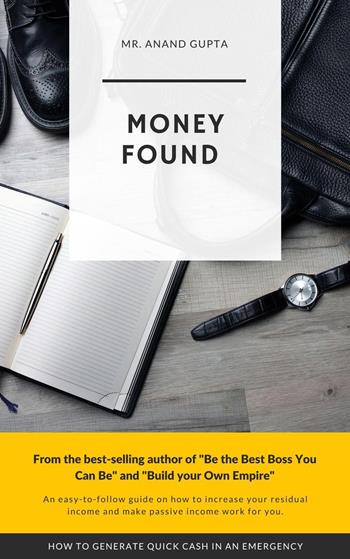 Introducing Money Found How to generate Quick Cash in An Emergency By Mr. Anand Gupta At least once in every person's life comes a time when the need is great and the resources are few. It can be hard enough to make ends meet on a decent wage, but, when the times get tough and the money just is not there to meet the need, a person can easily despair. 101 Ways to Raise Emergency Money has been written with you in mind. If you are forever trying to come up with inventive ways to earn and save more then this creative ebook will absolutely thrill you. When a person can have good financial control and a good plan of action. Should emergency funds be needed, a person can then sleep better at night. There is no real magic formula for coming up with on-the-spot emergency cash. There is a good deal of thinking through and the putting of a good plan into action. If you can do that, you have it made. That is truly all that any one of us can do to secure out tomorrows.