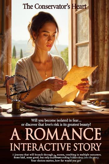 What would you risk for a second chance at love? Nora Whitmore has spent three years hiding behind her work, using Renaissance manuscripts and museum archives as shields against the pain of her past. When she accepts a commission to restore centuries-old love letters at an Italian villa, she expects nothing more than another project to fill the emptiness—a few months of careful, solitary work before returning to her carefully controlled life. She doesn't expect Matteo Santoro. The charismatic historian is everything Nora has trained herself to avoid: passionate, present, and determined to break through the walls she's built around her heart. As they work side by side in the villa's sun-drenched restoration studio, decoding the secrets of a forbidden Renaissance love affair, Nora finds herself facing an impossible choice. She can retreat into the safety of isolation, or she can risk her heart one more time—knowing that love's greatest beauty lies in its vulnerability. Through dozens of pivotal choices, you'll guide Nora through a summer that will change everything. Will she accept the Contessa's dinner invitation and begin opening herself to connection? Or retreat to the studio, choosing the comfort of solitude over the uncertainty of human bonds? Will she confront the grief that drove her into isolation, or let it dictate her future forever? The Renaissance lovers whose letters Nora restores faced their own impossible choices—between family loyalty and forbidden passion, between safety and truth. Their story mirrors Nora's own, creating a haunting parallel across five centuries. As historical secrets emerge from centuries-old ink and paper, Nora must decide: Will she preserve only the past, or finally allow herself to live in the present? Set against the breathtaking backdrop of Tuscany—cypress-lined hills, weathered villa walls, gardens wild with lavender—this is a romance that understands the courage it takes to love again after loss. Every choice matters. Every decision shapes not just the story, but the person Nora becomes. Perfect for readers who love emotional depth, interactive storytelling, art and history, and romance that earns its happy ending through genuine character growth. Will you choose safety, or will you choose to truly live? The Conservator's Heart is an interactive romance where your decisions create a unique reading experience. Multiple endings. Dozens of paths. One unforgettable summer in Italy.
