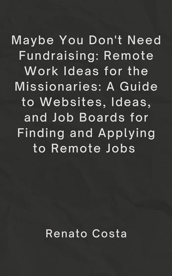 Remote work opportunities have expanded significantly in recent years, providing a new avenue for missionaries to support their work. In this book, we will explore a variety of remote job options that are well-suited to the skills and experiences of missionaries. By pursuing a remote job, you can provide for yourself and your family while also supporting your mission. We understand that transitioning from fundraising to remote work may seem daunting at first. However, we are here to assure you that remote work is easier than fundraising. With the right guidance and resources, you can find a remote job that complements your work as a missionary, and that allows you to serve your community while also providing financial stability. In this book, we will provide a comprehensive guide to finding and applying for remote jobs, as well as tips on how to manage your time effectively and maintain a healthy work-life balance.
