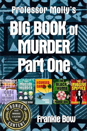 The first five Professor Molly mysteries, plus a bonus! This box set presents the first five Professor Molly mysteries in the order in which they are meant to be read and enjoyed: The Musubi Murder: After a brutal year on the academic job market, Professor Molly Barda finally lands a teaching job. In Hawaii! But chronically-underfunded Mahina State University isn't exactly paradise. After yet another round of budget cuts, Mahina State finally gets some sweet news: Jimmy Tanaka, founder of the Merrie Musubis lunch shop empire, announces a massive donation to the College of Commerce. But Tanaka goes missing before he can write the check, and Professor Molly is ordered to track down the missing mogul. As she uncovers festering feuds and fresh scandals, Molly realizes that there's something rotten in Mahina--and she may have bitten off more than she can chew. The Case of the Defunct Adjunct: Follow your dreams, and you'll never work a day in your life. Because that field's not hiring. Professor Molly Barda and her best friend Dr. Emma Nakamura brace themselves for yet another tedious faculty retreat at Mahina State University ("Where Your Future Begins Tomorrow"). But when the lecherous Kent Lovely, Mahina State's one-man hostile work environment, collapses face-first into his haupia cheesecake, the afternoon goes from dull to disastrous. Now Molly must fight to keep an innocent out of prison—and herself off the unemployment line. The Cursed Canoe: Seven women on the crew. Six seats in the canoe. Paddlers would kill to compete in the big race. What could go wrong? Professor Molly is pulled into investigating a mysterious paddling accident in Mahina Bay, and realizes it isn't just business majors who cheat to get what they want. Whether it's moving up in the college rankings, getting a seat in the Labor Day canoe race, or winning in the game of love, someone will do whatever it takes to sink the competition. The Black Thumb: It should have been a lovely summer afternoon. When a violent death disrupts the Monthly meeting of the Pua Kala Garden society, Professor Molly Barda has no intention of playing amateur detective. But Molly's not just a witness–the victim is Molly's house guest and grad-school frenemy. And Molly quickly finds to her dismay that her interest in the murder of the stylish and self-centered Melanie Polewski is more than just…academic. The Invasive Species: It's not nice to fool Mother Nature. On the way to interviewing a local farmer, Professor Molly stumbles onto a dismembered body in a field of genetically modified papayas. Molly is sure the murder has nothing to do with her new research project...until a second gruesome death rocks Mahina's tight farming community, and Molly's administration drops her research like a hot potato. If Molly can't root out the bad apples, not only will her tenure case go pear-shaped...she might end up pushing up daisies. BONUS CONTENT: Alice Mongoose and Alistair Rat in Hawaii In The Invasive Species, we are introduced to Alice Mongoose and Alistair Rat, protagonists of the classic children's picture book series. When Alice Mongoose sails from India to a sugar plantation on the Big Island of Hawaii, she is shocked to learn what her new job entails. She decides instead to strike out on her own. When she meets the gentle and dapper Alistair Rat, she knows that she has found a friend in her new Hawaiian home. The Alice Mongoose and Alistair Rat stories are classic tales of adventure, resilience, and friendship, beloved to this day by children of all ages.