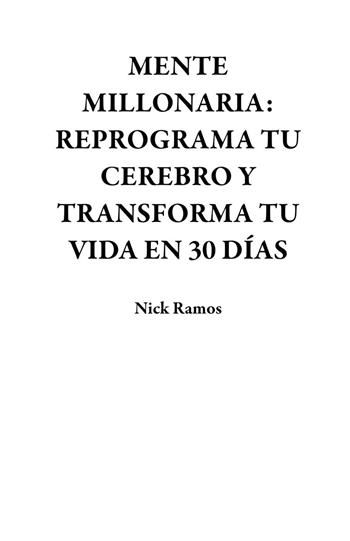 ¿Alguna vez te has preguntado por qué algunas personas logran el éxito mientras otras, a pesar de trabajar duro, parecen estancarse? La respuesta no está en las circunstancias externas, sino en algo mucho más poderoso: tu mente. En "Mente Millonaria: Reprograma tu Cerebro y Transforma tu Vida en 30 Días", el autor Nick Ramos te guía paso a paso para que desarrolles una mentalidad de éxito. Aprenderás cómo eliminar patrones negativos, adoptar hábitos de millonarios, superar la procrastinación y construir una vida de abundancia. Este libro es más que una guía; es un plan de acción práctico y basado en ciencia que incluye: Ejercicios de visualización y afirmaciones para reprogramar tu subconsciente. Los 10 hábitos diarios de los millonarios y cómo adoptarlos. Técnicas probadas para eliminar la procrastinación y aumentar tu productividad. Estrategias de inteligencia financiera para hacer que el dinero trabaje para ti. Herramientas para construir resiliencia y mantener una mentalidad de éxito en tiempos difíciles. Cada capítulo está diseñado para darte herramientas prácticas y ejercicios que podrás aplicar inmediatamente. En solo 30 días, habrás adoptado una mentalidad de éxito y habrás dado los primeros pasos hacia una vida transformada. ¿Estás listo para tomar el control de tu mente y, por lo tanto, de tu vida? Comienza este viaje transformador hoy mismo con "Mente Millonaria". FRASES DE VENTA ADICIONALES "Un libro que cambiará tu forma de pensar y te llevará al siguiente nivel de éxito." "La mentalidad es la clave del éxito, y este libro te muestra cómo desarrollarla." "Si quieres transformar tu vida, este es el libro que necesitas leer."